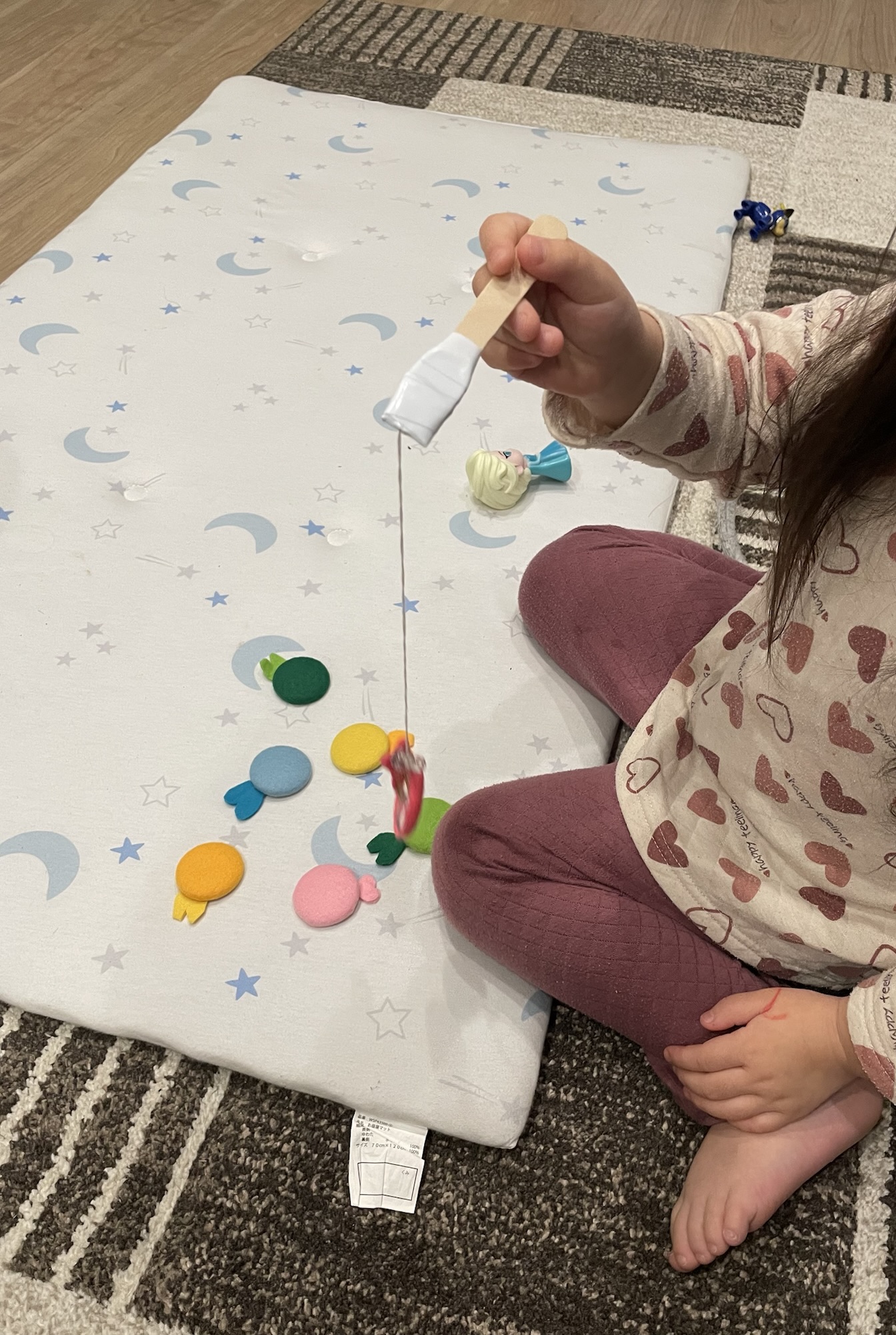 1歳の息子は一人ではまだまだうまくできず、一緒に釣り竿を持ちながらやって、お姉ちゃんが手伝ってあげたりもして二人で仲良く遊んでいました!